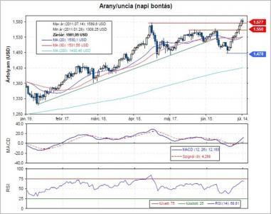 Két héttel ezelőtt meglódult az arany, és tegnap már az újabb történelmi csúcsnak örülhettek a befektetők. Egyhuzamban 8 emelkedő napot láthattunk, melyet hamarosan pihenő követhet. Ha sikerül az 1.577 dolláros maximum felett stabilizálódnia az árfolyamnak, akkor hamarosan az 1.600 dolláros szintet is áttörheti a kurzus - olvasható az Erste elemzésében.