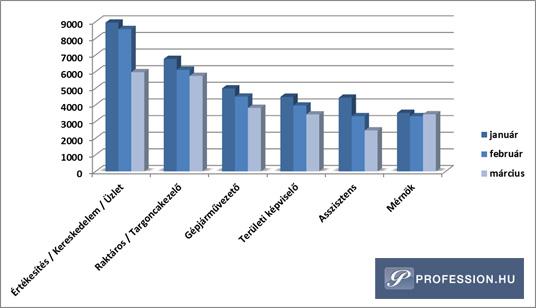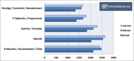 Az újévi fogadalmak eredményeként januárban közel 19 ezer, februárban több mint 22 ezer új felhasználó regisztrálta magát a Profession.hu rendszerében, ez leginkább a decemberi 7492-es számhoz mérten mutatja a piac felpezsdülését. Legtöbben az eladói, raktárosi, vagy gépjárművezetői állások iránt érdeklődtek. Emellett még mindig sokan keresik a területi képviselői és asszisztensi pozíciókat. A mérnökök a szabadszavas keresések listája alapján csak a hatodik helyen állnak, pedig a munkáltatók őket várják a leginkább.