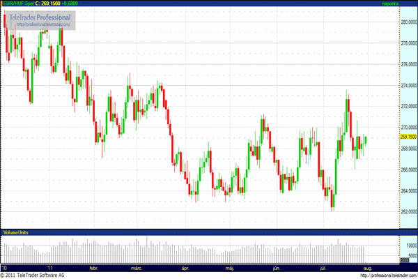 Péntek reggel 268,69 forinton jegyezték az eurót a csütörtök esti 268,29 forint után. Az elmúlt év végén 278,25 forinton történt az európai közös valuta jegyzése. Az euró/forint árfolyam január 10-én, 280,84 forinton volt idei maximumán, míg április 6-án 263,05 forinton a minimumán.