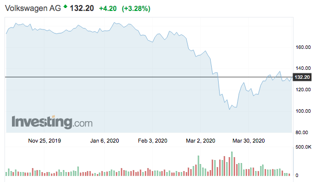 A VW részvények tőzsdei árfolyama 3%-kal emelkedik ma délelőtt