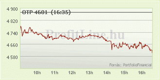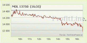 Mol 665 forinttal, 4,61 százalékkal 13.750 forintra csökkent, 2,9 milliárd forintos forgalomban. Az OTP részvények ára 269 forinttal, 5,52 százalékkal 4.601 forintra esett, forgalmuk 20,7 milliárd forintot tett ki.