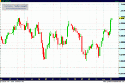 Az ausztrál dollár meredeken, közel 1 dollárral erősödött az amerikai dollárral, szemben, miután a kamatdöntés értelmében a jegybanki alapkamat 25 bázisponttal 4,75 százalékra emelkedett. Az AUD/USD árfolyam 0,9888 dollárról 0,9988 dollárra emelkedett.