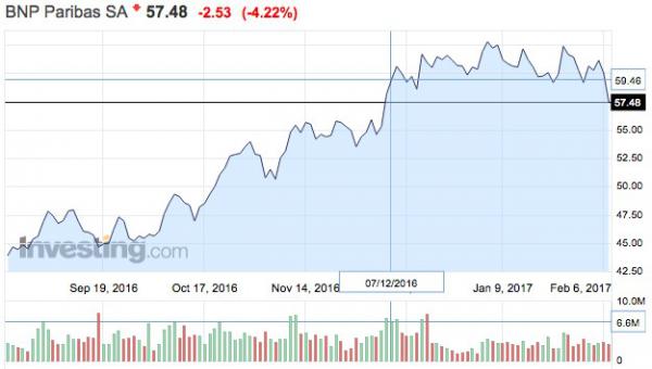 A BNP Paribas a negyedik negyedévben 1,44 milliárd eurós adózott eredményt ért el, szemben az 1,63 milliárd eurós várakozással.