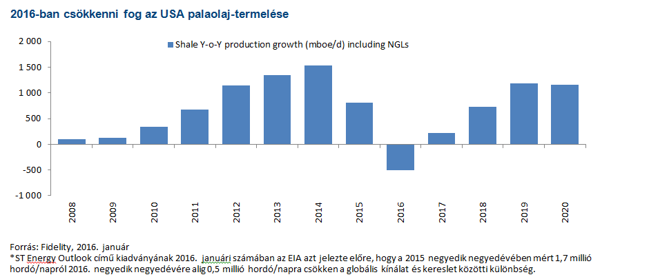 A kőolajipari beruházások mértéke világszerte drasztikusan csökken: a kitermelők visszafogják az új projekteket, és – ami talán a legfontosabb – az USA palaolaj-kitermelése 2016-ra 0,5 millió hordó/nap mennyiséggel csökkenni fog, ami segít némileg helyrebillenteni a termelés és a kereslet között világviszonylatban kialakult egyensúlytalanság.