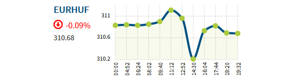 Az euró jegyzése a kora reggeli 310,86 forintról estére 310,73 forintra csökkent, a svájci franké 267,00 forintról 267,30 forintra emelkedett.