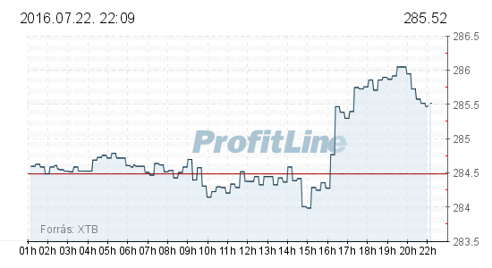 Az amerikai dollárral szemben 285,78 forintra gyengült a forint a reggeli 284,50 forintról. A hét elején 285,05 forinton állt.