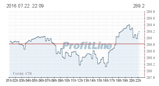 A svájci frank jegyzése 288,90 forinton állt a reggeli 289,00 forint után. A hetet 289,70 forint körül indította.