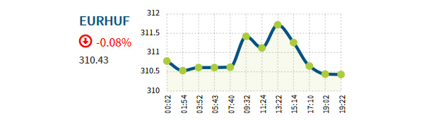 Pénteken 18.30 órakor az euró jegyzése 310,44 forintra gyengült a reggeli 310,59 forintról. Az euró napközben 310,32 és 311,78 forint között mozgott.