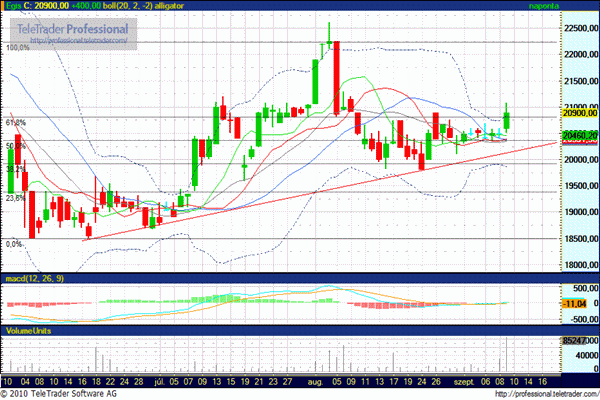 Nos, a több mint két hetes oldalazás - és kivárás - meghozta a gyümölcsét, az emelkedő trendvonalát megközelítve jelentős forgalom mellett robbant ki az árfolyam a beszűkült Bollinger-szalagból. Sikerült a 20.800 forintos ellenállási szint fölé zárnia, így megnyílhat az út 22.250 forint irányába. Csökkenésben támasz 20.800 forintnál.