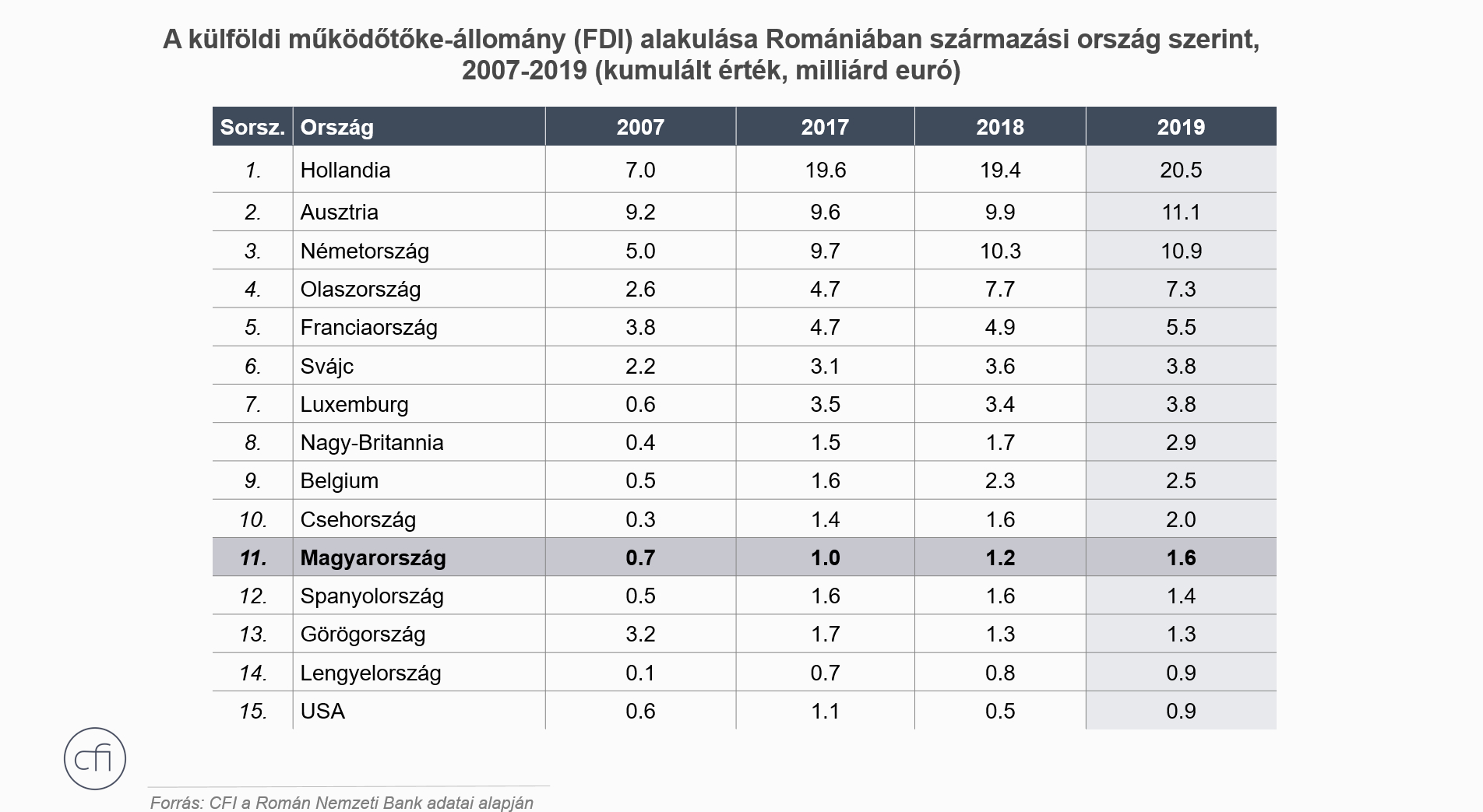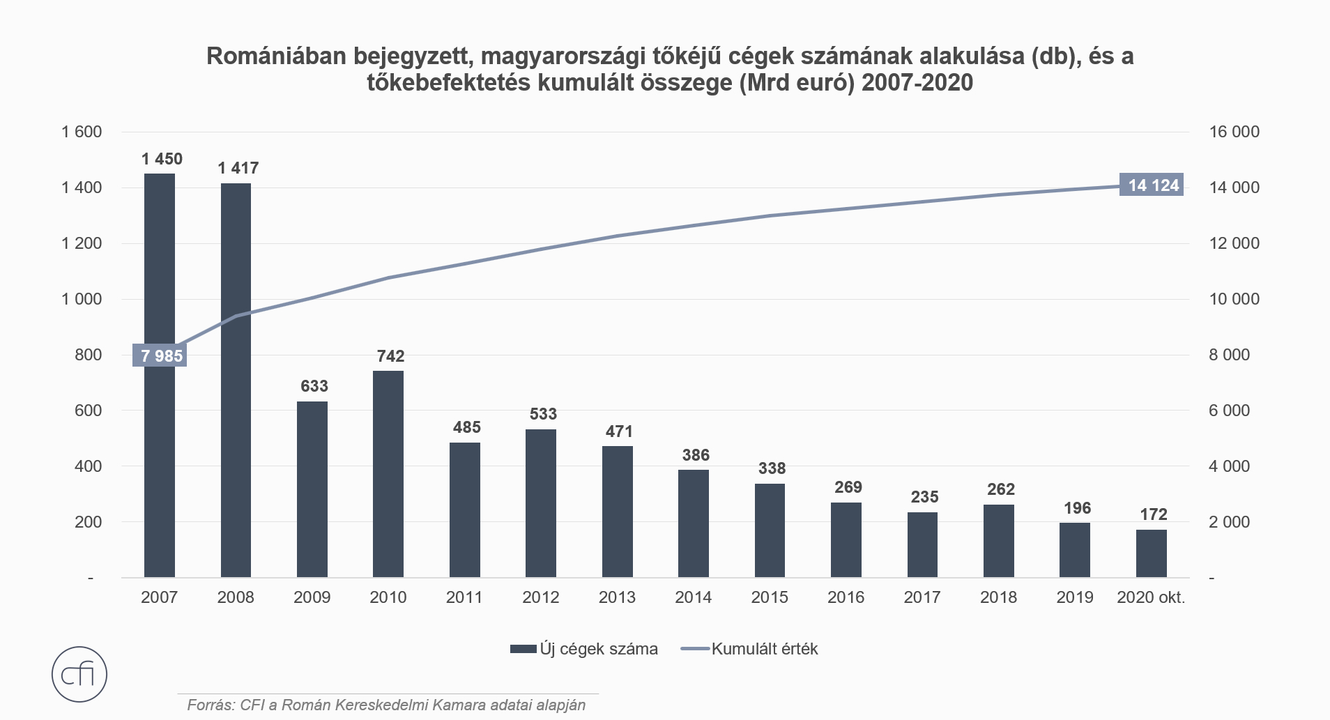 Magyarország, bár több szempontból előnnyel indult ebben a versenyben, az utóbbi időben mintha elveszítette volna lendületét, annak ellenére, hogy keleti szomszédunknál több szektorban továbbra is komoly igény van szakmai és pénzügyi befektetők megjelenésére. Míg 2007-ben 1450, addig 2019-ben mindössze 196 olyan új céget jegyeztek be Romániában, amelynek alapításában magyarországi tőke is szerepet játszott valamilyen mértékben – hívta fel a helyzetre a figyelmet Szabó Zsolt, a befektetési és M&A tanácsadással foglalkozó, nemzetközi CFI csoport helyi irodájának szenior tanácsadója.