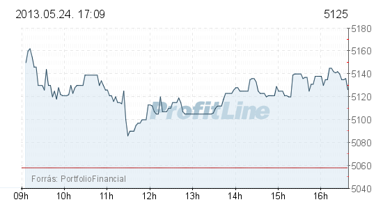 A Mol ára 90 forinttal, 0,54 százalékkal 16 480 forintra csökkent, 2,2 milliárd forintos forgalomban. Az OTP 67 forinttal, 1,32 százalékkal 5125 forintra erősödött, forgalma 4,8 milliárd forintot tett ki.