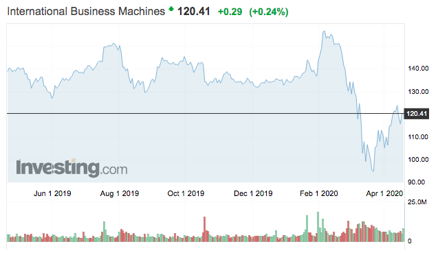 Az IBM részvények tőzsdei árfolyama az elmúlt 1 évben
