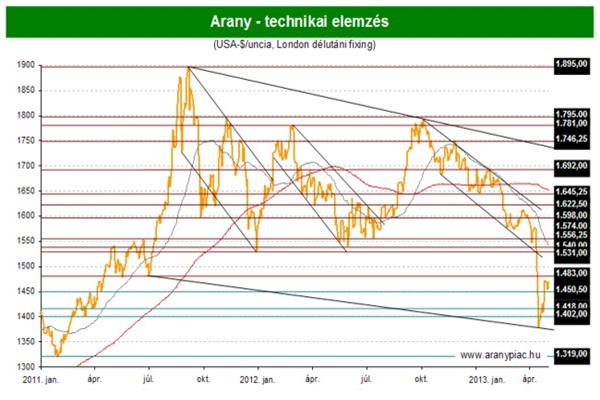 Az aranyár április közepén két vérzivataros napon több mint 200 dollárt zuhant a New York-i azonnali árjegyzésben, majd az azt követő két hétben ennek kétharmadát már visszanyerte. Az áremelkedés kezdetben nem tűnt többnek az extrém mértékben túladott piac korrekciójánál, de időközben a főként Kínában és Indiában kialakult aranyvásárlási láz is szárnyra kapta az árfolyamot. A törékeny erősödés mostanra valódi feltámadássá nőtte ki magát. Ugyanakkor a nagy befektetési társaságok továbbra is visszavonulóban vannak az aranyból, ezért kérdés, hogy meddig tud kitartani a mostara elért szinten az árfolyam. Intő jel ugyanis, ha csak a lakosság fektet aranyba, miközben az elemzők hadát foglalkoztató vérprofi befektetők a nemesfémből egyre inkább kiszállnak.