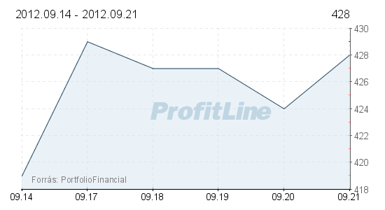 A Magyar Telekom 2,1 százalékkal, 9 forinttal erősödött, 428 forintra nőtt az árfolyama.