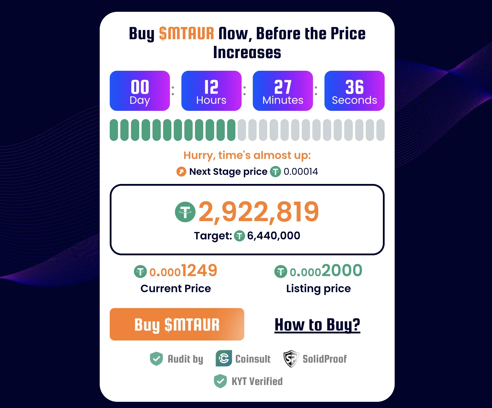 Ez a következetes emelkedő trend erős bizalmat jelez a projekt alapjai és hosszú távú víziója iránt. Egy olyan piacon, ahol sok korai fázisú token hirtelen értékcsökkenést szenved el, a MTAUR megőrizte lendületét – ezzel világosan elkülönül a tipikus előértékesítési mintázatoktól.
