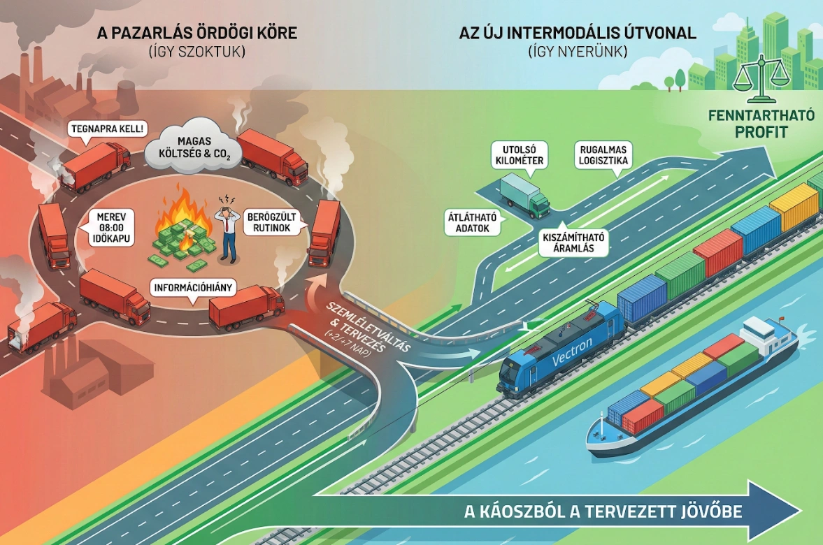 A távol-keleti áruk nagy része továbbra is Észak-Európa kikötőibe érkezik, pedig az Adriai útvonal akár 6 nappal rövidebb tengeri időt, fele olyan hosszú vasúti kapcsolatot és szabad kapacitást kínál a régió számára. A megszokás azonban erősebb, mint a racionalitás. Ez az egyik legszemléletesebb példája annak, hogy az „így szoktuk” működés konkrétan napokat, súlyos pénzeket és rengeteg üzemanyagot éget el feleslegesen.