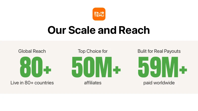 Készen állsz, hogy a forgalmadat valódi bevétellé alakítsd? A TEMU páratlan kereseti lehetőséget kínál: népszerű termékekkel, kiemelkedő jutalékokkal és több mint 80 országban elérhető globális jelenléttel. Itt az idő, hogy bevond a felhasználóidat és soha nem látott mértékben növeld a tranzakciókat.