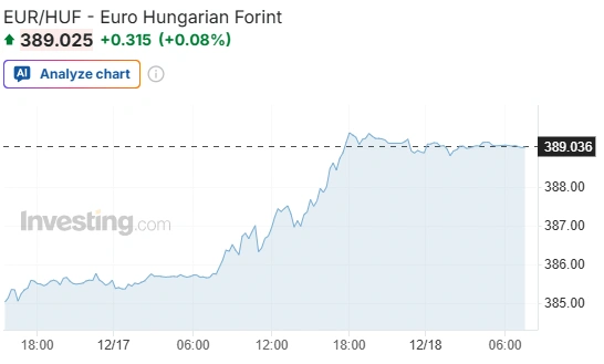 December eleje óta a forint közel két százalékkal gyengült az euró, bő fél százalékkal a dollár és több mint másfél százalékkal a svájci frank ellenében.