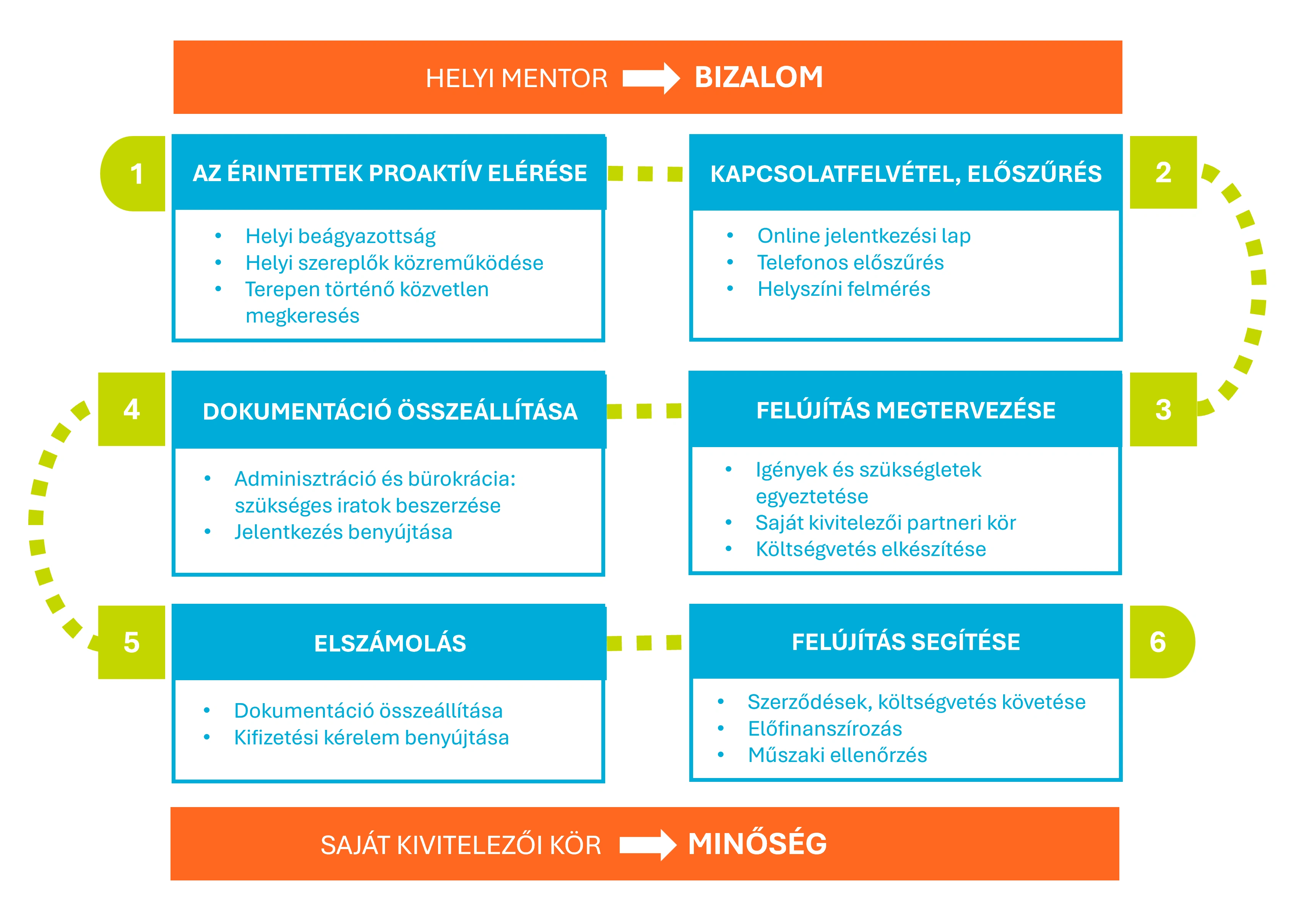 Személyes mentorálás: szakemberek kísérik végig a családokat az ügyintézésben és döntésekben.