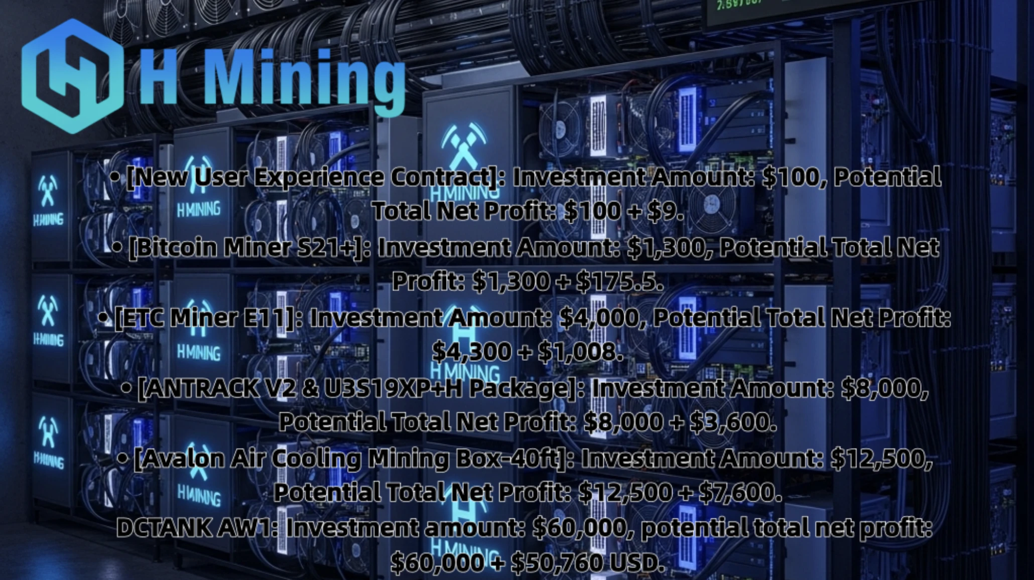 Ma, mint a felhőbányászat iparágának vezető szereplője, a H Mining egy rövidebb utat mutat a vagyonhoz: megtanítunk arra, hogyan juthatsz 110 000 dollár értékű Bitcoinhoz stabil és hatékony platformunk segítségével.