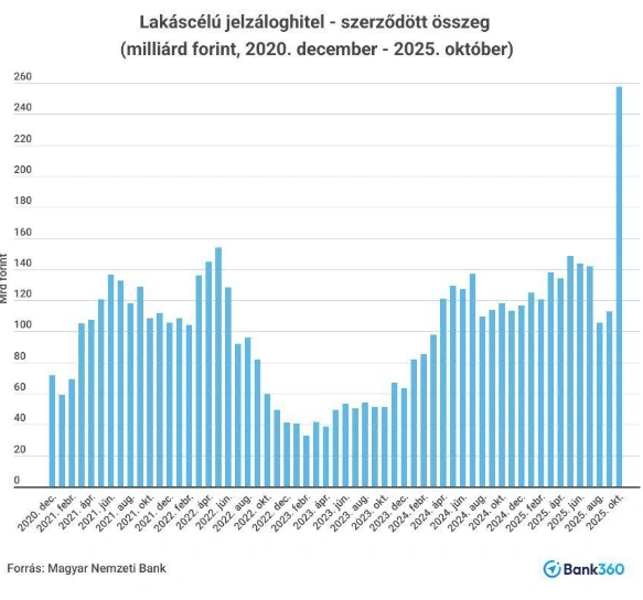 Minden rekordot megdöntött az Otthon Start lakáshitel, eközben lassan a földbe állnak a piaci kamatozású lakáshitelek. A Magyar Nemzeti Bank szerda reggel közzétett adatai szerint megdőlt a lakáscélú jelzáloghitelek szerződéses összege, összesen 257,57 milliárd forintra kötöttek szerződést a magyar háztartások. Ez 128 százalékkal haladta meg az előző havi, és 118 százalékkal a tavaly októberi eredményt. A teljes volumen közel 80 százaléka támogatott lakáshitel volt októberben. Piaci hitelre mindössze 52,32 milliárd forintnyi szerződés született, ami kevesebb, mint a fele a júliusi, 111 milliárd forintos eredménynek - ekkor jelentették be az Otthon Start Programot.