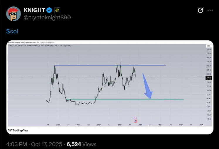 Két nappal a zuhanás után a SOL árfolyama ismét visszaesett 173,63 dollárra, majd újra visszapattant, hogy aztán 2025. október 17-én ismét leessen 175,18 dollárra.