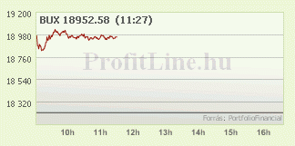 A BUX 11.30 órakor 18.952,58 ponton állt, ami a legutóbbi, szerdai záró értékéhez képest 739,10 pontos, 4,06 százalékos emelkedés, a hétfői nyitásnál 34,80 ponttal alacsonyabb.