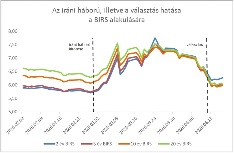 Az iráni háború körüli és a hormuzi-szoros megnyitása körüli bizonytalanság továbbra is olyan makrotényezők, amelyek alakulása visszakorrigálhatja a kamatszinteket akár a választások előtti szintre is.
