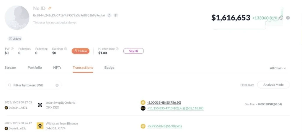 Minden akkor kezdődött, amikor a kereskedő felfedezett egy alacsony piaci kapitalizációjú tokent, amely mögött valódi felhasználási eset állt – még mielőtt a projekt „berobbant volna”. A történet ismerős lehet: egy bátor döntés, majd várakozás. A 币安人生 nevű token elkezdett lendületet venni, és az árfolyama meredeken emelkedett. Ez lehetővé tette, hogy a korán beszálló kereskedő 48 óra alatt 1,6 millió dollárt realizáljon.