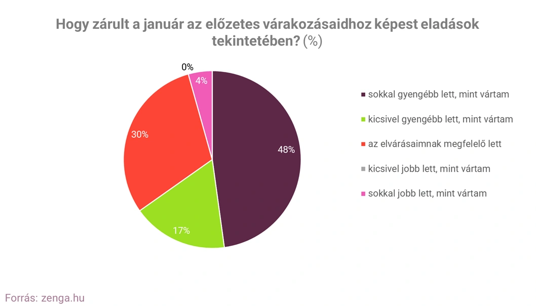 Arra a kérdésre, hogy milyennek érzékelték a januárt a korábbi várakozásaikhoz képest, a válaszadók kétharmada mondta azt, hogy kevesebb lakást és házat adott el, mint azt előzetesen várta.