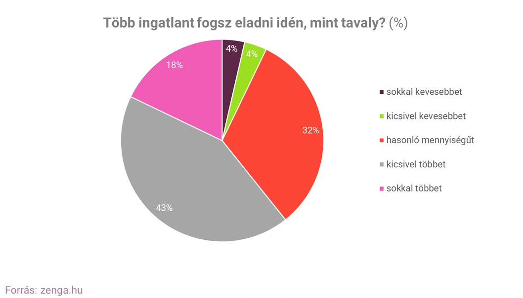 A jövőbe tekintve azonban már optimistábbak az értékesítők, kevesebb mint 10 százalékuk nyilatkozott csak úgy, hogy kevesebb ingatlant fog eladni idén, mint tavaly, és a megkérdezettek 60 százaléka szerint erősebb lesz az idei év, mint a tavalyi volt.