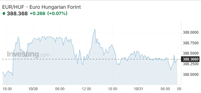 Az euró hét órakor 388,40 forinton állt, alacsonyabban a csütörtök esti 388,65 forintnál. A dollár jegyzése 336,08 forintról 335,70 forintra csökkent, a svájci franké pedig 419,20 forintról 418,87 forintra süllyedt.