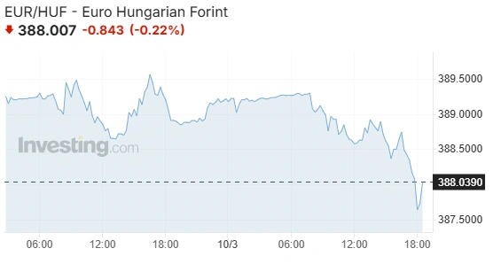 Délután hat órakor az eurót 388,19 forinton jegyezték a kora reggeli 389,29 forint után. A dollár jegyzése 330,41 forintra csökkent 332,45-ről, a svájci franké pedig 415,75 forintra 416,42-ről.