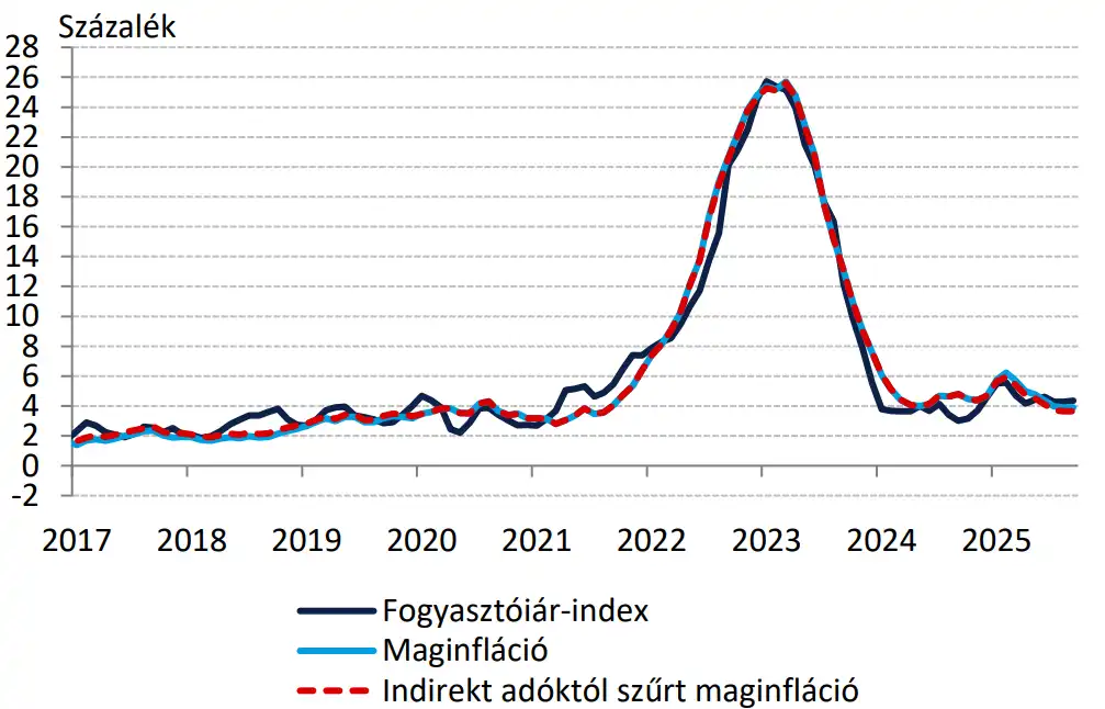 A Tanács megítélése szerint a szigorú monetáris kondíciók fenntartása indokolt." A jegybank ismét közölte, hogy az infláció 2026 elején mérséklődhet tartósan a toleranciasávba, és a szigorú monetáris kondíciók biztosításával 2027 elején érhető el fenntartható módon a 3 százalékos inflációs cél. Hozzátették, hogy a devizapiac stabilitásának fenntartása kulcsfontosságú az inflációs várakozások mérséklésében.