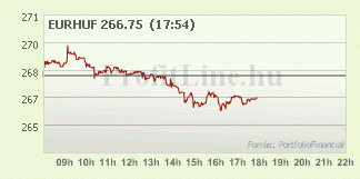 A reggeli forintgyengülést követően az euró jegyzése a 267 forint alatti szintre süllyedt: egy euróért 266,80 forintot adtak kedden délután ötkor, szemben a hétfő délutáni 267,50/80 forintos és a kedd reggeli 268,20/60 forintos szinttel.