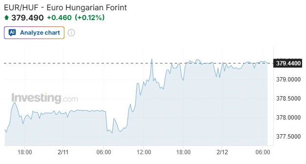 A forint a hét eleje óta gyengült, 0,4 százalékkal az euró, 0,1 százalékkal a dollár és 0,6 százalékkal a svájci frank ellenében.