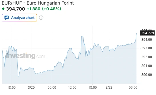 A forint a márciusi kezdéshez képest gyengült mindhárom devizával szemben. 4,4 százalékkal az euró, 6,8 százalékkal a dollár és 4,1 százalékkal a svájci frank ellenében.
