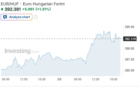 A hét eleje óta a forint gyengült: 3,8 százalékkal az euró, 5,6 százalékkal a dollár és 4,5 százalékkal a svájci frank ellenében.
