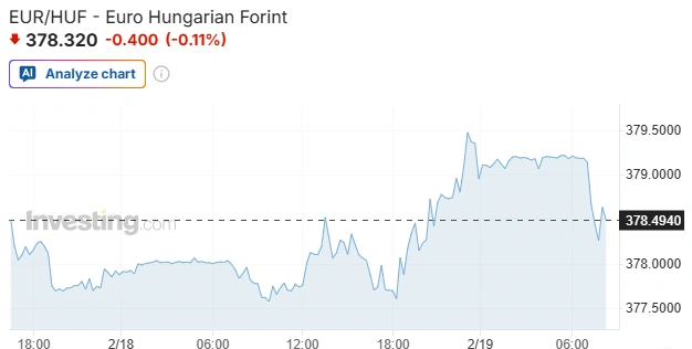 Az eurót reggel hat órakor 379,17 forinton jegyezték az előző este hat órai 377,70 forint után, a dollár jegyzése 321,68 forintra ment fel 319,83 forintról, a svájci franké pedig 416,01 forintra 414,10-ről.