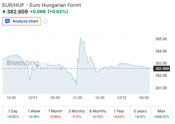 Az év eleje óta a forint 7,0 százalékkal erősödött az euróval szemben, valamint 17,9 százalékkal a dollár és 6,3 százalékkal a svájci frank ellenében.