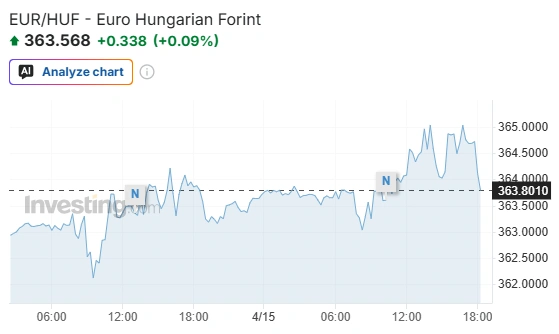 Délután hat órakor az eurót 364,68 forinton jegyezték a reggel hét órai 363,78 forint után, a dollár jegyzése 308,99 forinton állt 308,57 forint után, a svájci franké pedig 395,55 forinton 394,93 után.