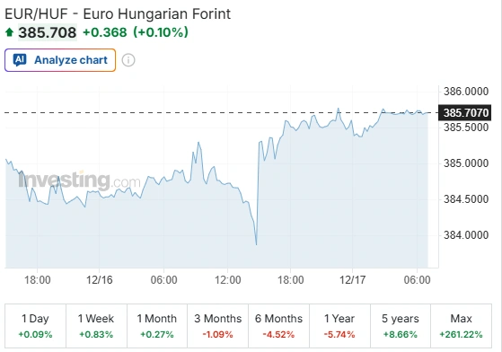 Alig mozgott csütörtök reggelre a forint árfolyama