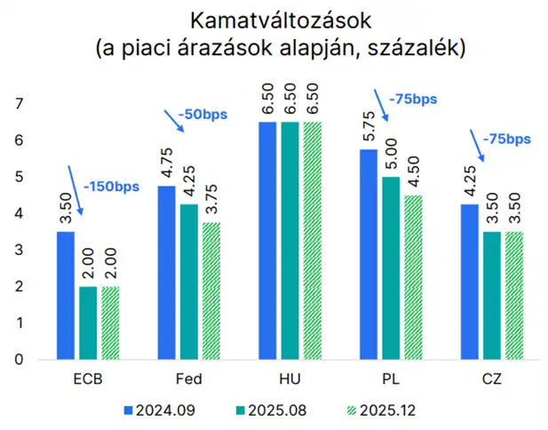 Az utóbbi időben kialakult, 400 forint alatti euró árfolyammal a magyar fizetőeszköz jelenleg kissé felülértékelt. Ugyanakkor a forintot a kereskedelmi konfliktusok remélt további csillapodása és a folyó fizetési mérleg többlete mellett a nemzetközi és a hazai kamatok közti emelkedő különbözet is támogatja, így a magyar deviza a korábban vártnál stabilabb lehet.