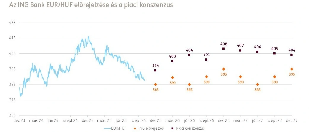 A vezető elemző a forintárfolyam kapcsán kiemelte: „Bár a piac – beleértve az ING-t is - korábban folyamatosan gyengülésre számított, a forint a jegybank által fenntartott magas kamatprémium miatt az idei évben felülteljesítő maradt a régióban. Előrejelzésünk szerint a monetáris politika fő fókusza továbbra is a stabilitás megőrzése lesz, így 2025 végére 385 forint körüli EUR/HUF árfolyam valószínűsíthető.”