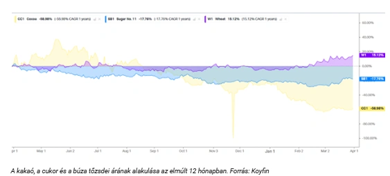 Idén a kakaó tőzsdei teljesítményét továbbra is jelentős áresés határozza meg: az év eleje óta (2026 elejétől napjainkig) mintegy 45%-os csökkenés figyelhető meg.