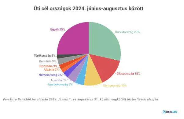 A horvát tengerpart volt a legnépszerűbb külföldi úti cél a magyarok körében idén nyáron is, még mindig utcahosszal előzte meg a csak egy kicsit közelítő üldözőket. A Bank360.hu oldalán keresztül utasbiztosítást kötő utazók 29 százaléka déli szomszédunkhoz indult, szinte kivétel nélkül tengerparti nyaralásra. A dobogóra még Olaszország és Görögország fért fel, előbbit az utazók 15 százaléka, utóbbit a 10 százaléka választotta. Ez alapján a 2023-as nyári hónapokhoz képest arányaiban azért többen látogattak el Olaszországba és Görögországba, míg Horvátország iránt minimálisan csökkent az érdeklődés.