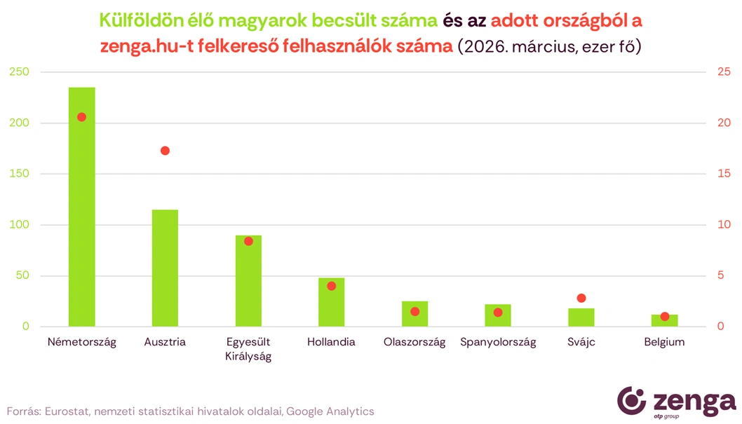 A zenga.hu adatai szerint az ingatlant keresők bő 1,5 százaléka Németországból, míg több mint 1 százaléka Ausztriából érkezik, így ez a két ország adja az összes felhasználó 2,5-3 százalékát, a vizsgált külföldi országból érkező keresőknek pedig közel kétharmadát – tette hozzá Futó Péter.
