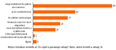 A kkv-k legnagyobb részét (84%) a forgalom visszaesése sújtotta, közel felük (45%) számára pedig a vevők fizetésének elmaradása jelentett gondot. Harmadik leggyakrabban felmerülő problémaként a likviditási nehézségeket jelölték meg (37%).