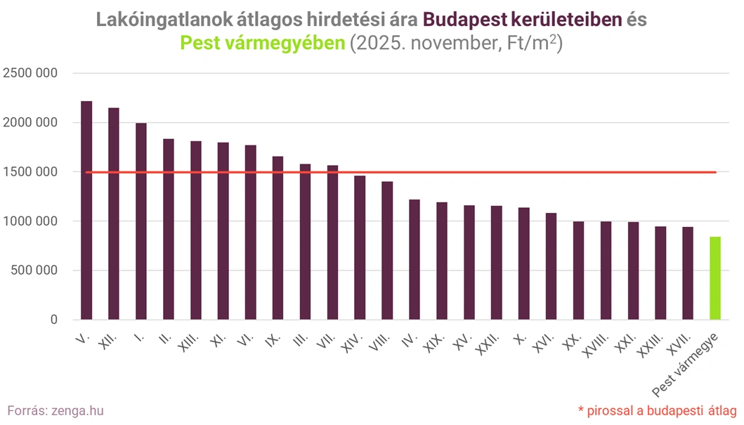 A legolcsóbb kerületekben - ilyen a XVII., XVIII., XXI., XXIII. - az átlag 900 ezer és 1 millió forint között van négyzetméterenként, az agglomerációban viszont 840 ezer, nem véletlen, hogy Budapest helyett sokan itt keresnek maguknak ingatlant.
