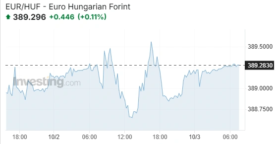 Az euró hét órakor 389,29 forinton állt a szerda esti 389,30 forint után. A dollár jegyzése 332,86 forintról 332,45 forintra változott, a svájci franké pedig 416,30 forintról 416,42 forintra módosult.